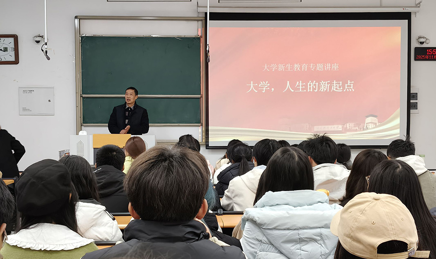 余腾平围绕“认识大学、适应大学、融入大学”“独立生活、自主抉择、主动学习”“立足大一、投入大一、起步大一”以及“明确方向、找准目标、砥砺前行”四个维度展开讲解。他鼓励同学们准确把握大学学习特点,珍惜大一关键时期,系统重塑知识体系,为后续发展筑牢基础。他强调,要养成独立思考与自主管理的习惯,善于规划时间、克服惰性。