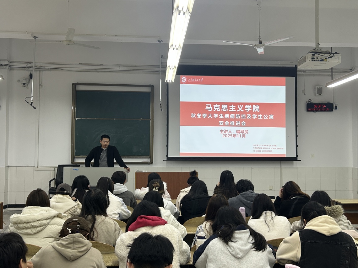 根据学校学工部的部署,11月16日至24日,马克思主义学院组织全院研究生和本科生,分年级在汇东与李白河校区召开了“安全你我同行 共建平安校园”主题班会,围绕反诈防骗、消防安全、秋冬季疾病防控、心理健康四大专题开展。各班在辅导员的指导下,结合实际各有侧重地组织学习。