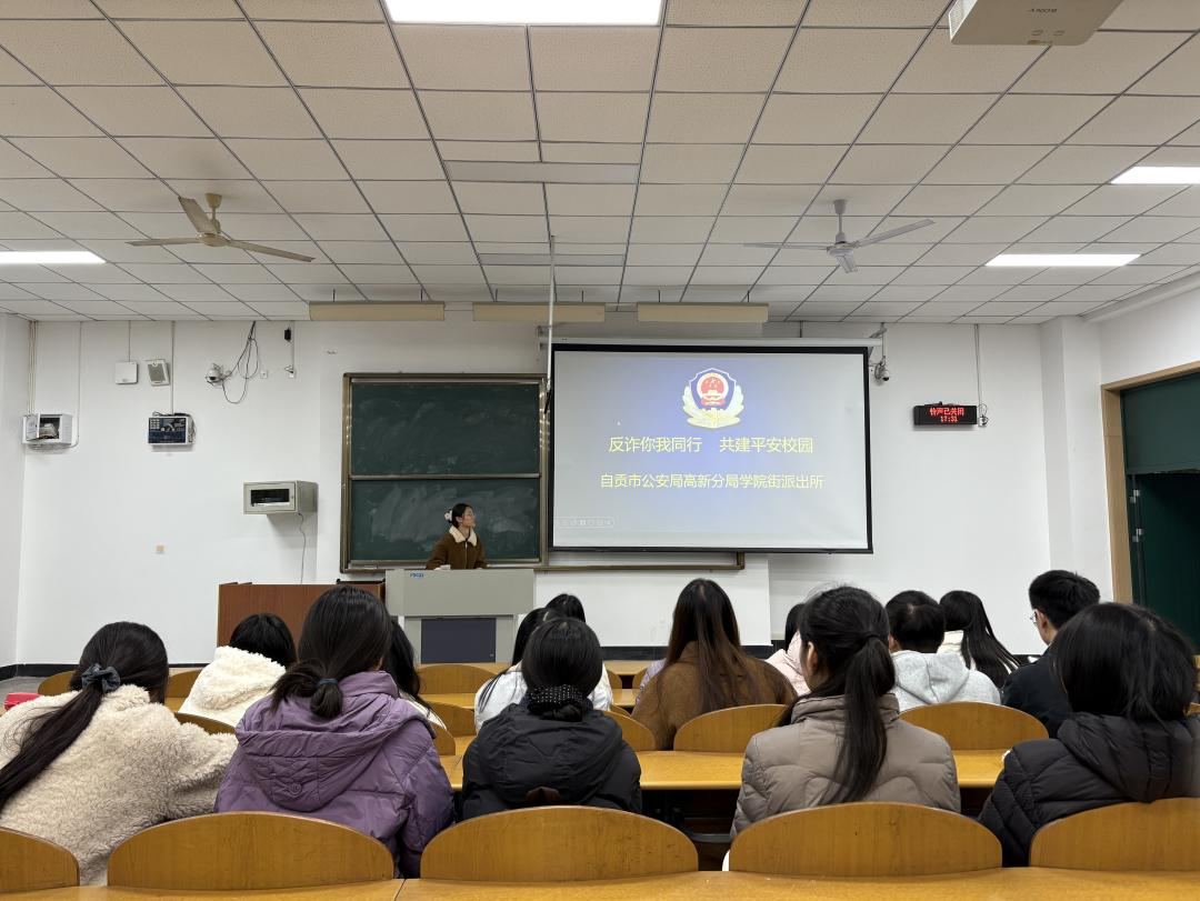 本科年级则分层开展针对性安全教育。大三、大四年级则紧密结合他们的住宿与学业情况展开,重点讲解了宿舍违规用电的危害,普及“一懂三会”消防知识(懂得本场所火灾危险性,会报警、会灭火、会逃生)。在反诈防骗方面,剖析了校园贷、刷单返利等常见诈骗案例,让同学们提高防范意识。针对人际矛盾、学业焦虑等问题,提供了专业的心理疏导建议。大一、大二年级则侧重于基础安全认知的培养。通过生动有趣的故事分享,在轻松氛围中帮助同学们掌握反诈“四个不”原则(不轻信、不透露、不链接、不转账),帮助同学们树立正确的安全观念,筑牢心理防线。