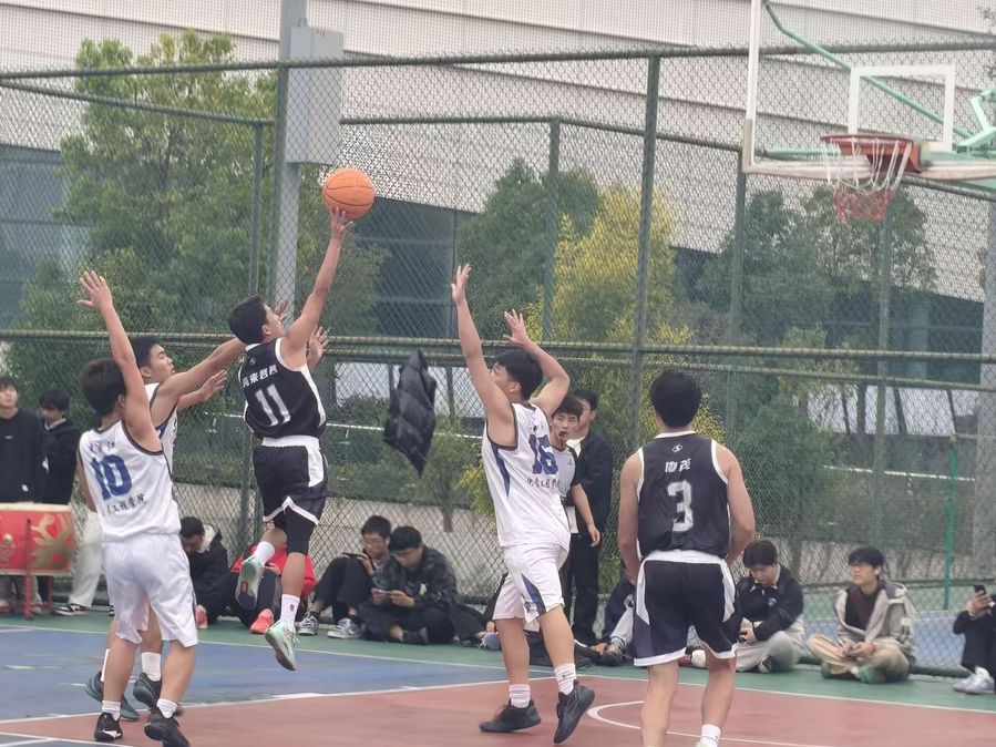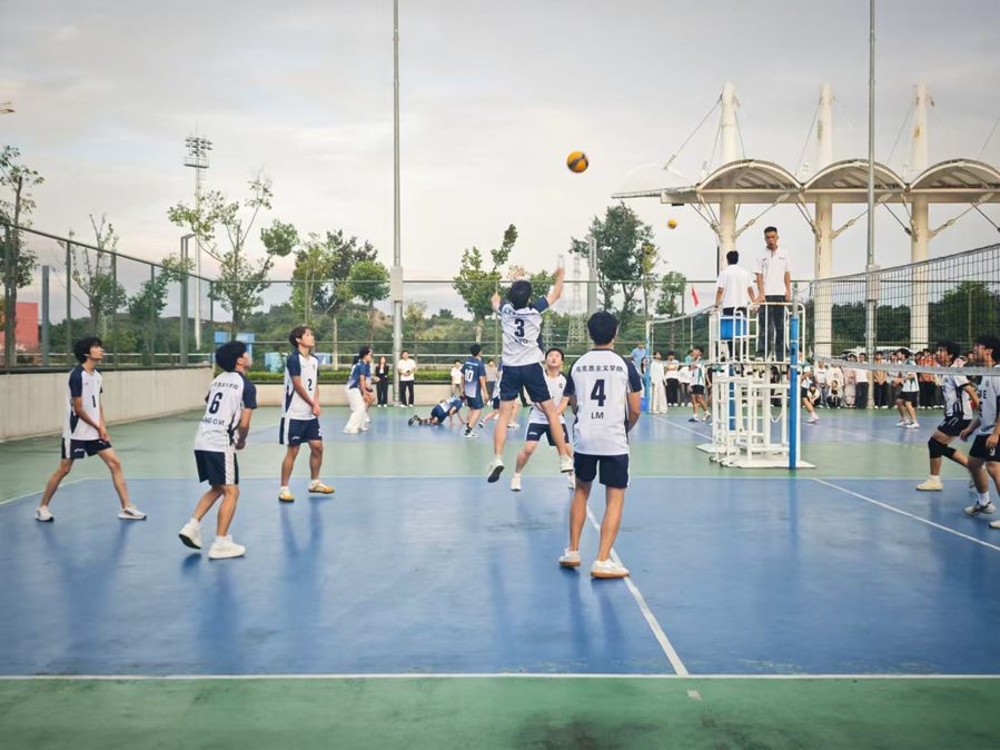 赛场上,篮球队员默契配合、迎难而上,每一次突破与投篮都凝聚着团队智慧与力量;排球赛中,男排发扬“不抛弃、不放弃”精神,顽强拼搏,点燃全场;女排默契配合,扣球与传球衔接流畅。队员们眼神坚定、击掌有力,口号声与加油声交织,传递信任与力量。老师到场助威,为球员加油,叮嘱安全,表扬大家的拼搏精神和团队凝聚力。