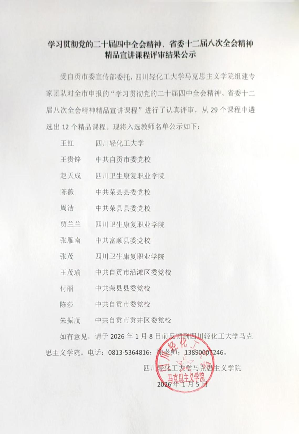 学习贯彻党的二十届四中全会精神、省委十二届八次全会精神精品宣讲课程评审结果公示