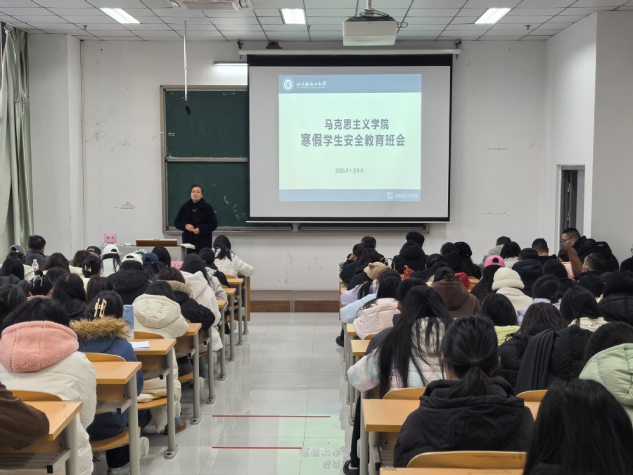 辅导员曹剑华对寒假离校返家、申请留校住宿、外出旅行探亲、预防冬季流行性疾病等情况提出了详细的安全注意事项。要求全体同学绷紧安全弦,做到防患于未然,确保度过一个平安、健康、充实的假期。