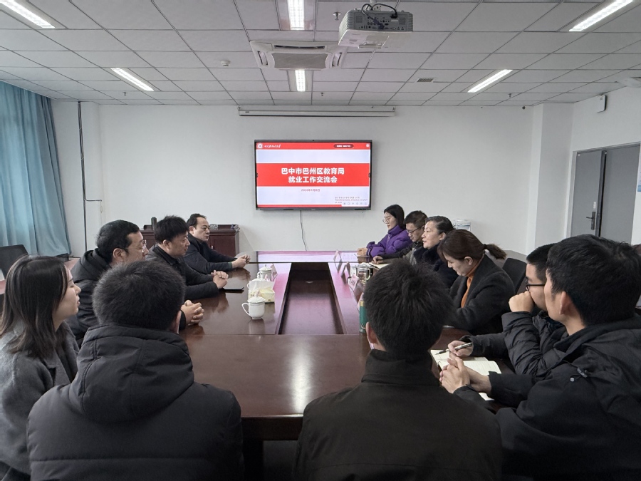 1月8日上午,巴中市巴州区教育局邓玉强股长率巴州区第四中学、巴中市职业中学相关负责人来我院围绕人才引进考察与协同育人开展就业工作交流会。学院党委书记王建琼、党支部书记陈翔及部分学生代表参加交流。会议由党委副书记、纪委书记李香主持。