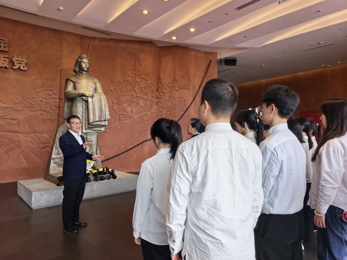 在江竹筠烈士雕像前,院长范光杰带领全体人员回顾了中国共产党党史,在总结讲话中强调,此次“行走的思政课”是学院推进“两个课堂”深度融合的重要举措。学院将结合思政课质量提升行动要求,进一步促进两个课堂融合走深、走快、走实”,持续创新思政教育形式,引导学生从革命传统中汲取奋进力量,在躬身实践中厚植家国情怀,努力培养担当民族复兴大任的时代新人。